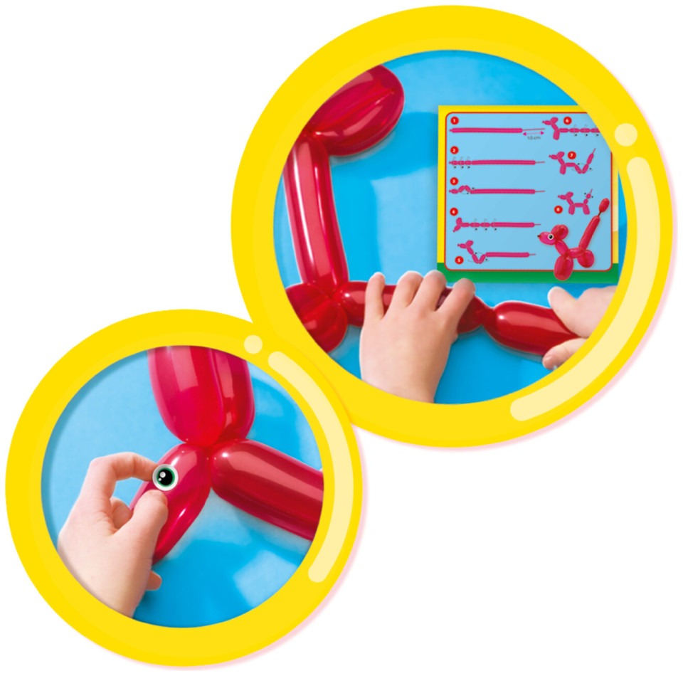 Με αυτό το σετ από την SES Creative, σας εξηγούμε βήμα προς βήμα πώς μπορείτε να φτιάξετε διασκεδαστικές φιγούρες από μπαλόνια. Τελειώσατε το στρίψιμο; Πάρτε το φύλλο με τα αυτοκόλλητα και δώστε στα ζώα σας μάτια, τις ρόδες του αυτοκινήτου και τις κηλίδες καμηλοπάρδαλης. Ασφαλή και ανθεκτικά μπαλόνια σε φωτεινά χρώματα Περιλαμβάνει χειροκίνητη αντλία για εύκολο φούσκωμα των μπαλονιών Διασκεδαστικά αυτοκόλλητα Σαφείς οδηγίες.