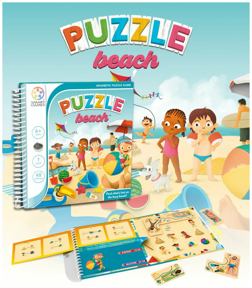 Μπορείτε να βοηθήσετε τα παιδάκια να βρουν τα χαμένα τους παιχνίδια στην πολυσύχναστη παραλία; Ανακαλύψτε το με το μαγνητικό παιχνίδι ταξιδιού της εταιρίας SmartGames! Λύστε τη σπαζοκεφαλιά, τοποθετώντας τα μαγνητάκια στις σωστές θέσεις, έτσι ώστε να δημιουργήσουμε μία διαδρομή από το παιδάκι προς το χαμένο παιχνίδι. Ένας διασκεδαστικός τρόπος για την ανάπτυξη της συγκέντρωσης, της χωροταξικής δεξιότητας και της επίλυσης προβλημάτων! Το μαγνητικό βιβλιαράκι περιλαμβάνει 5 μαγνήτες και 48 προκλήσεις αυξανόμενης δυσκολίας με τις λύσεις τους. Κατάλληλο για ηλικίες άνω των 6 ετών.