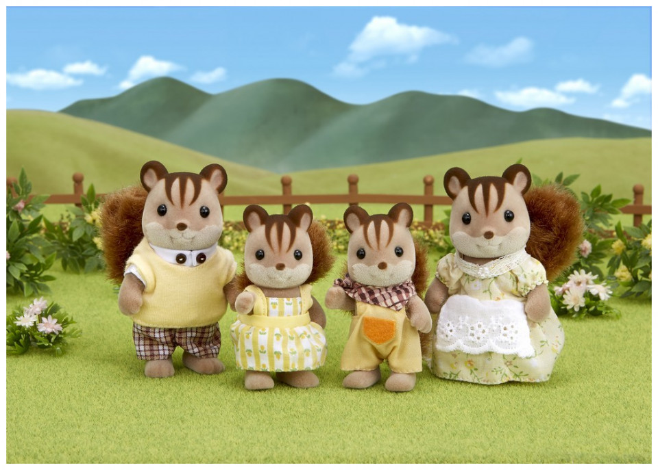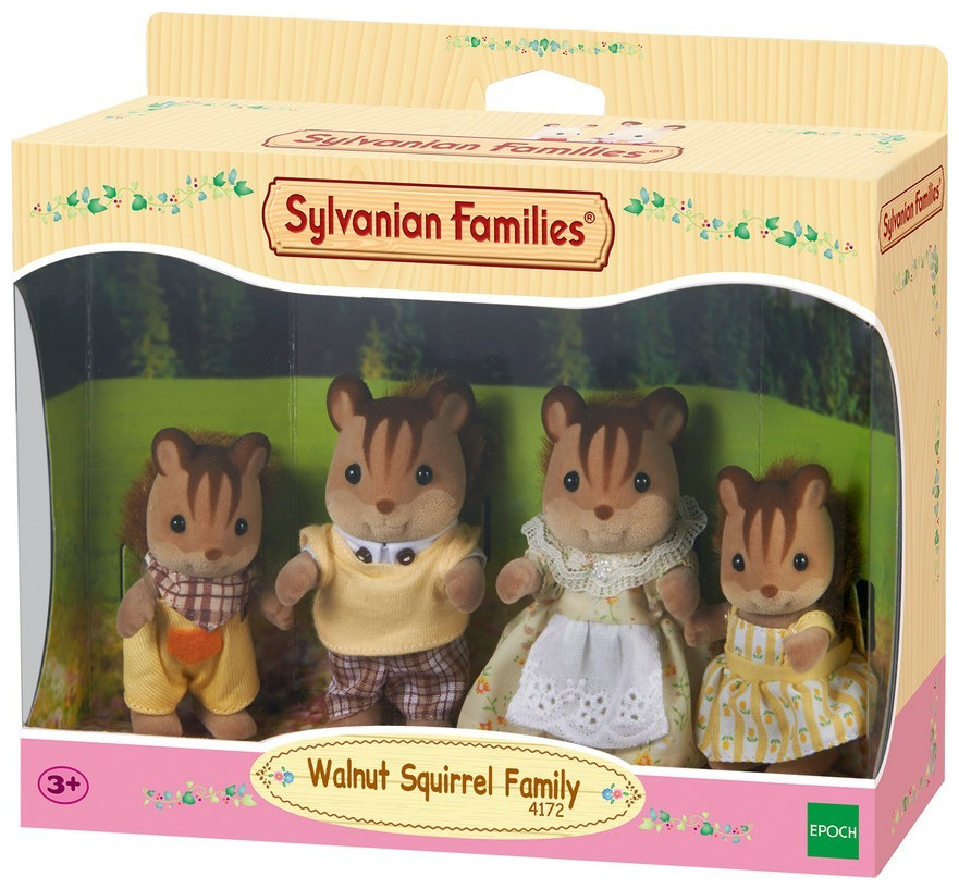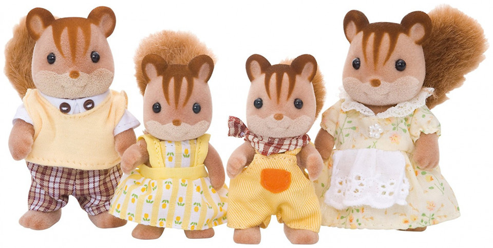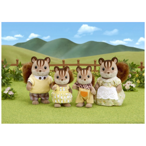 Τα μικρά της οικογένειας Walnut Squirrel έχουν φουντώσει τις ουρίτσες τους, θέλουν σας κάνουν καλή εντύπωση.Ο μπαμπάς Cedric έχει «χρυσά» χεράκια, ότι έπιπλο του δείξεις σε φωτογραφία μπορεί να στο φτιάξει.Η μαμά Yardley μιλάει με τους φίλους της και γελάει τόσο δυνατά που η κοιλίτσα της πάει, μια πάνω, μια κάτω. Κάθε βράδυ πριν κοιμηθεί χτενίζει και φουντώνει την ουρίτσα της.Ο μικρός Ralph είναι γεμάτος με ενέργεια, λατρεύει να σκαρφαλώνει στα δέντρα. Λένε πως δεν υπάρχει ούτε ένα δέντρο που ο Ralph να μην έχει σκαρφαλώσει πάνω του.Η μικρή Saffron λατρεύει κάθε τι κίτρινο, τα κίτρινα μπαλόνια, τα κίτρινα φορέματα. Το μόνο κίτρινο που δεν λατρεύει είναι το λεμόνι… και ξέρεις γιατί; Γιατί είναι ξινό.Αν τα αφήσεις θα τρυπώσουν παντού ακόμα και στις αναμνήσεις σου.Οι Sylvanian Families είναι τόσο διαφορετικές αλλά τόσο αγαπημένες.