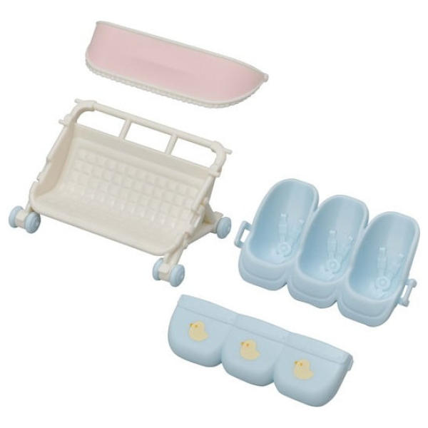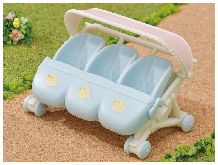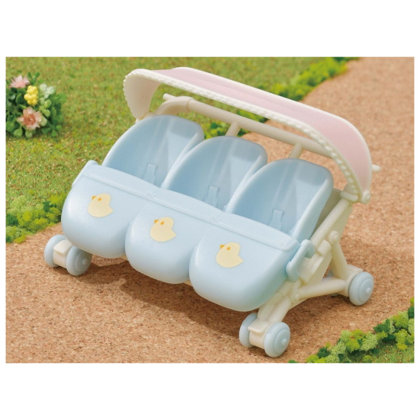 The Triplets Stroller (little babies) is a pushchair for baby triplet figures. By removing the seat, you can make space for a baby and a pair of twins. The seat can also be used as a child seat in a car (sold separately).Combine with triplets (sold separately) for even more fun. Can also be used as a child seat for other vehicles in the series, such as the Picnic Wagon, Family Saloon Car, and Family Campervan (all sold separately).