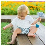 Γυρίστε την κουδουνίστρα και υποκινήστε τις αισθήσεις με τις χρωματιστές χάντρες που μιμούνται τους καταπραϋντικούς ήχους σταγόνας βροχής παρέχοντας στα μωρά ώρες μουσικής ψυχαγωγίας. Οι συνεχείς κινήσεις ανακίνησης και πρόσφυσης βοηθούν στην ανάπτυξη λεπτών και ακαθάριστων κινητικών δεξιοτήτων. Τα απαλά χρώματα , οι συναρπαστικοί ήχοι βροχής και η υφή από τα πολύχρωμα υφάσματα συμβάλλουν στην ανάπτυξη των αισθήσεων , οπτικών, ακουστικών και αφής σε μωρά και νήπια Σχεδιασμένη για τα μικρά χέρια των μωρών έχει άνετο κράτημα ,ευκολία στην χρήση και θέμα από την συλλογή μας Koala Daydream collection .Το μωρό σας μπορεί να χρησιμοποιήσει την κουδουνίστρα Koala εύκολα, αναπτύσσοντας τις ικανότητες αρπαγής αντικειμένων καθώς παίζει. Το πιάσιμο, το κούνημα και η παρακολούθηση των χαντρών αναπτύσσει τον συντονισμό και την εμπλοκή των διανοητικών δεξιοτήτων και οικοδομή την ανάπτυξη των λεπτών και ακαθάριστων κινητικών δεξιοτήτων. Κατασκευασμένη χωρίς BPA και φθαλικούς εστέρες καθιστούν το παιχνίδι ασφαλές και μακράς διαρκείας που θα λατρέψει το μωρό σας για τα επόμενα χρόνια. Η Taf Toys κατανοει ότι η επιλογή του σωστού αναπτυξιακού παιχνιδιού για το παιδί σας είναι μια σοβαρή απόφαση. Η μεγάλη γκάμα προϊόντων της Taf Toys σας παρέχει αναπτυξιακά παιχνίδια που αντιστοιχούν στην ηλικία του μωρού σας και είναι προκλητικά, διασκεδαστικά και εμπνέουν τη φαντασία. Όλα τα παιχνίδια μας δημιουργήθηκαν με σκοπό να προωθήσουν τη συναισθηματική, γνωστική και σωματική ανάπτυξη του μωρού σας κατά τη διάρκεια των δύο πρώτων ετών ανάπτυξης τους. Στόχος μας είναι να βοηθήσουμε το μωρό σας να δημιουργήσει τα θεμέλια για μια υγιή και ευτυχισμένη αναπτυξιακή πορεία. Πρόκειται για ένα εξ’ολοκλήρου εκπαιδευτικό παιχνίδι, αφού βοηθά κυρίως στην ανάπτυξη των οπτικών, κινητικών και ακουστικών δεξιοτήτων. Μέσα από τη χρήση του το παιδί μαθαίνει το συντονισμό ματιού-χεριού καθώς και τη σχέση δράσης-αντίδρασης, μιας και με κάθε κίνησή του παράγει ήχο. Επιπλέον το παιδί ανακαλύπτει τον κόσμο των χρωμάτων και των σχημάτων, πληροφορίες τις οποίες μπορεί να περιεργαστεί μέσω της αφής και της όρασης. Τέλος, πρόκειται για ένα άκρως διαδραστικό παιχνίδι που εγείρει το ενδιαφέρον του παιδιού, κρατώντας το παράλληλα απασχολημένο ατελείωτες ώρες.