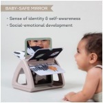 Black & White Rattling Spinning Book από την Taf Toys, 10 μαγευτικές ασπρόμαυρες σελίδες, ειδικά σχεδιασμένες για να εμπνέουν και να τονώνουν το οπτικό και νευρικό σύστημα του μωρού σας, βοηθώντας έτσι στην βελτίωση της όρασης του μωρού, ενισχύοντας την ικανότητα εστίασης σε μία μόνο εικόνα και καλλιεργώντας την πρώιμη γνωστική ανάπτυξη. Επιπλέον ο καθρέφτης και η σελίδα ολογράμματος, εισάγει τα μωρά σε αστραφτερά στοιχεία, εμπλουτίζοντας την οπτική τους εξερεύνηση. Ο απαλός ήχος από κροτάλισμα κατά την περιστροφή των σελίδων, προσθέτει έναν ενθουσιασμό στο χρόνο παιχνιδιού, που υποστηρίζει την πρώιμη γνωστική ανάπτυξη. Ιδανικό παιχνίδι για την ώρα που στέκεται στην κοιλίτσα του και εξαιρετική επιλογή παιχνιδιού για νεογέννητα 0-3 μηνών Το Ασπρόμαυρο Βιβλίο προάγει τη γνωστική ανάπτυξη ενισχύοντας την αισθητηριακή τους εμπειρία με έναν συναρπαστικό, διαδραστικό τρόπο. Το παιδικό βιβλίο υψηλής αντίθεσης βοηθά στην ανάπτυξη της οπτικής οξύτητας και της εστίασης. Τα ασπρόμαυρα παιδικά παιχνίδια 0-3 μηνών έχουν σχεδιαστεί για να διεγείρουν και να δεσμεύουν τα μωρά στους πρώτους μήνες τους, παρέχοντας έναν διαδραστικό τρόπο μάθησης. Είτε πρόκειται για την ώρα που στέκεται στην κοιλίτσα του, είτε για μια γαλήνια ιστορία πριν τον ύπνο, αυτό το ασπρόμαυρο παιδικό βιβλίο υψηλής αντίθεσης είναι ένα ουσιαστικό μέρος της πρώιμης ανάπτυξης του μωρού σας. Δεν είναι απλώς ένα βιβλίο, είναι ένα εργαλείο για την ανάπτυξη των γνωστικών ικανοτήτων και των κινητικών δεξιοτήτων του μωρού σας, καθιστώντας το μια πολύτιμη προσθήκη στα απαραίτητα παιχνίδια του μωρού σας.