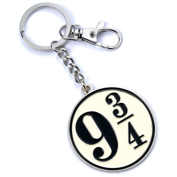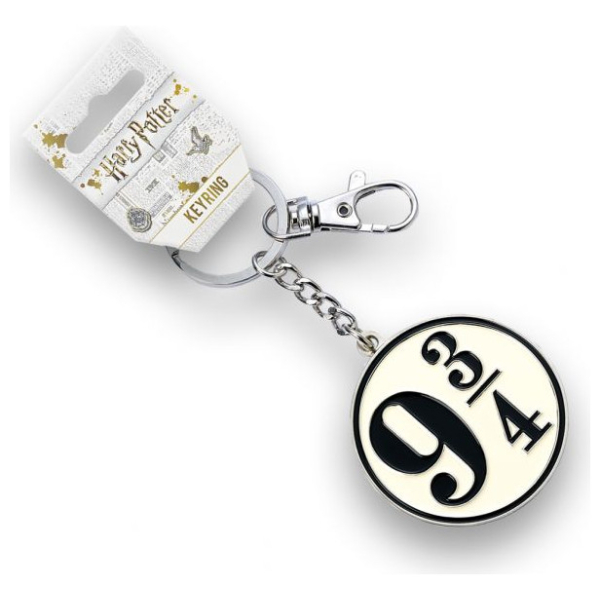 Official Harry Potter Platform 9 3/4 Keyring Platform 9 3/4 Keyring on a silver plated ring and clip This keyring has been created using the official style guide from Warner Bros. They are approx 50mm. It comes on official Harry Potter branded card packaging and shows the Warner Bros logo on the reverse. The Carat Shop are the official licensed manufacturers of Harry Potter Jewellery on behalf of Warner Bros.