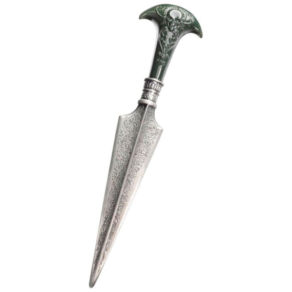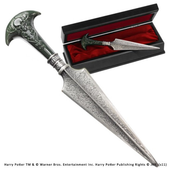 Αυτό το αυθεντικό αντίγραφο του στιλέτου της Μπέλατριξ Λεστρέιντζ, όπως φαίνεται στο Χάρι Πότερ και οι Κλήροι του Θανάτου, είναι κατασκευασμένο από χυτό μέταλλο, έχει μήκος 19 εκατοστά και διατίθεται σε ξύλινο συλλεκτικό κουτί. Οποιαδήποτε συλλογή Bellatrix Lestrange χρειάζεται αυτό το τρομερό στιλέτο. Όλοι θυμόμαστε τη θλιβερή σκηνή από τις ταινίες των Κλήρων του Θανάτου όπου αυτό το στιλέτο πετάχτηκε στον καημένο Ντόμπι. Δεν είναι παιχνίδι, αλλά συλλεκτικό. Δεν προορίζεται για παιδιά. Μόνο ενήλικες!