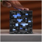 This illuminating diamond ore replica is full of detailed textures inspired by rock and crystal. The gem-like textures glow with the light of the LED, which has three different modes—a gentle, flickering pulse, steady illumination, and off, ready to come back on at your touch. This ore may not drop actual gemstones, but it truly shines; the touch-activated LED features two modes: on, off, and a gentle pulse. Measuring just over 4″ tall, it’s the perfect size for any space in your home, dorm, office or wherever you play. The block is powered by 3 AAA batteries (not included) so you never have to worry about hitting lava while searching for this ore! For Minecraft fans ages 8+
