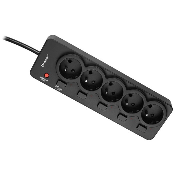 TRACER PowerGuard 1.8m με 5 υποδοχές είναι μια αξιόπιστη και πρακτική λύση για την προστασία των ηλεκτρονικών σας συσκευών από υπερτάσεις και βραχυκυκλώματα. Με κομψό μαύρο σχεδιασμό και λειτουργίες ασφαλείας, είναι ιδανικός για το σπίτι ή το γραφείο. Χαρακτηριστικά & Πλεονεκτήματα 5 Γειωμένες Υποδοχές: Επιτρέπει τη σύνδεση πολλαπλών συσκευών ταυτόχρονα, εξοικονομώντας χώρο και οργανώνοντας καλύτερα τον χώρο εργασίας σας. Μήκος Καλωδίου 1.8 μέτρα: Προσφέρει ευελιξία στην τοποθέτηση, επιτρέποντας την εύκολη πρόσβαση σε πρίζες που βρίσκονται σε απόσταση. Προστασία από Υπερτάσεις και Βραχυκυκλώματα: Ενσωματωμένο φίλτρο υπέρτασης με χρόνο απόκρισης μικρότερο του 1 ns και προστασία από βραχυκυκλώματα έως 10 A, διασφαλίζοντας την ασφάλεια των συσκευών σας. Αυτόματη Ασφάλεια Υπερφόρτωσης: Σε περίπτωση υπερφόρτωσης, η ασφάλεια ενεργοποιείται αυτόματα, προστατεύοντας τις συνδεδεμένες συσκευές. Μηχανικό Σύστημα Κλειδώματος για Παιδιά: Προστατεύει τα παιδιά από τον κίνδυνο ηλεκτροπληξίας, καθιστώντας το ιδανικό για οικογένειες. Φωτιζόμενος Διακόπτης Ενεργοποίησης/Απενεργοποίησης: Επιτρέπει τον εύκολο έλεγχο της παροχής ρεύματος, ακόμα και σε σκοτεινούς χώρους. Δυνατότητα Στερέωσης στον Τοίχο: Με ειδικές οπές στη βάση, μπορείτε να το τοποθετήσετε εύκολα στον τοίχο για καλύτερη οργάνωση του χώρου.    Αξιοπιστία & Ευρωπαϊκός Σχεδιασμός Η TRACER είναι μια αξιόπιστη ευρωπαϊκή εταιρεία, γνωστή για την ποιότητα και την καινοτομία των προϊόντων της. Το PowerGuard 1.8m σχεδιάζεται στην Ευρώπη, προσφέροντας υψηλή απόδοση και λειτουργικότητα σε προσιτή τιμή, καθιστώντας το μια value for money επιλογή για κάθε χώρο.